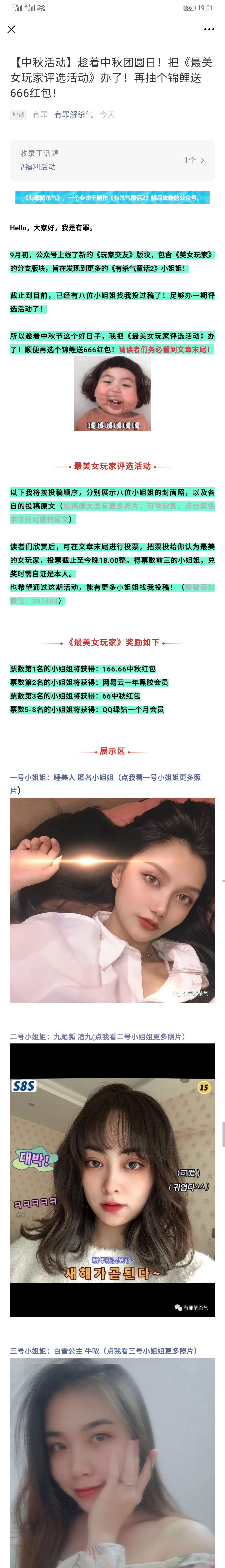 【中秋活动】趁着中秋团圆日!把《最美女玩家评选活动》办了!再抽个锦鲤送666红包!