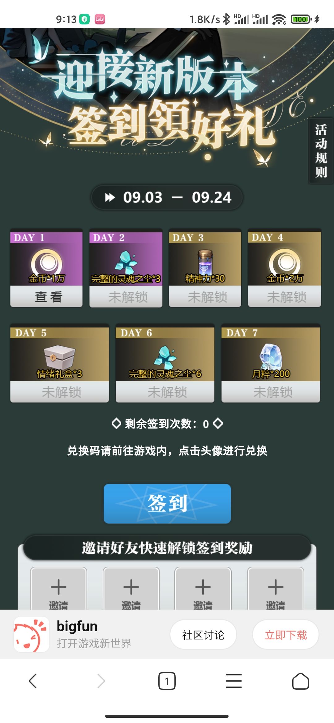 新活动,B服,官服都能领,登录之后签到七天就行了,是兑换码 全渠道通用。