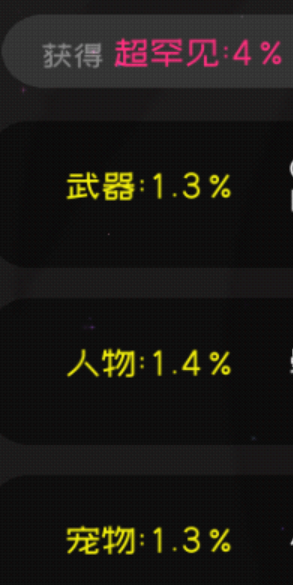 看具体强度选择抽取,超罕见或限定概率为5%,注意该池中只有人物武器宠物。