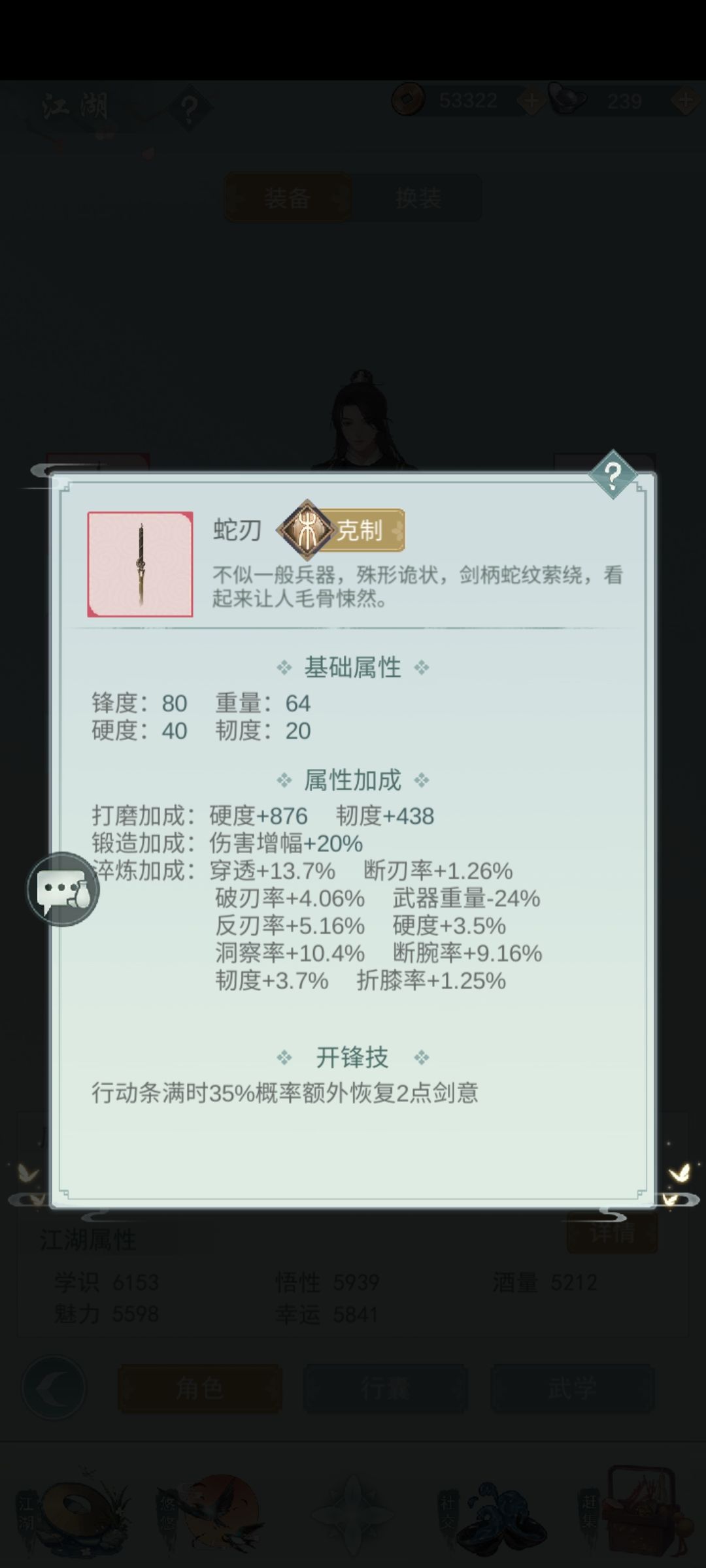 破刃低一些问题也不大,因为可以打前面的何思拿15%破刃buff,楼主的破刃也只有4%,当时buff也只拿了10%的,但我脸好(๑¯ω¯๑)就很棒~贴个剑的属性