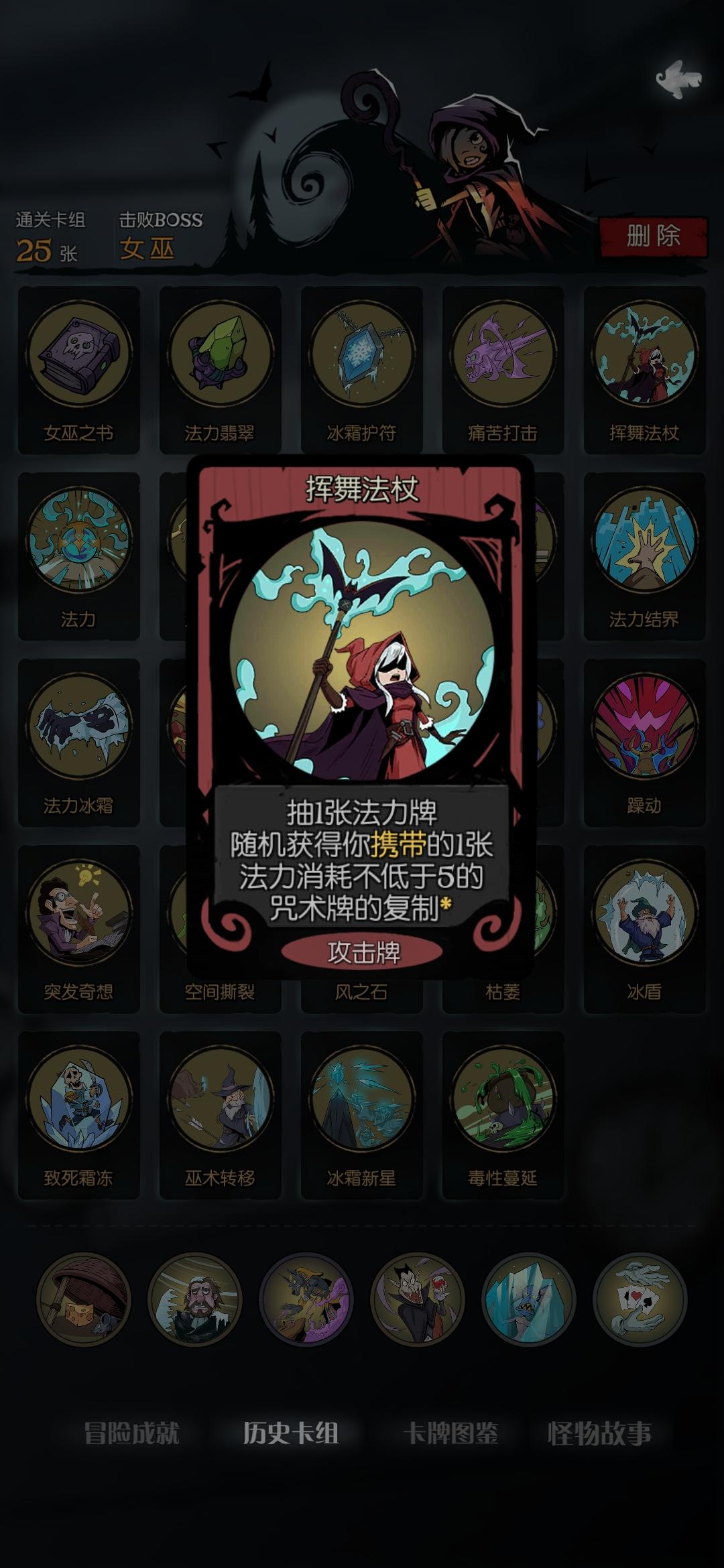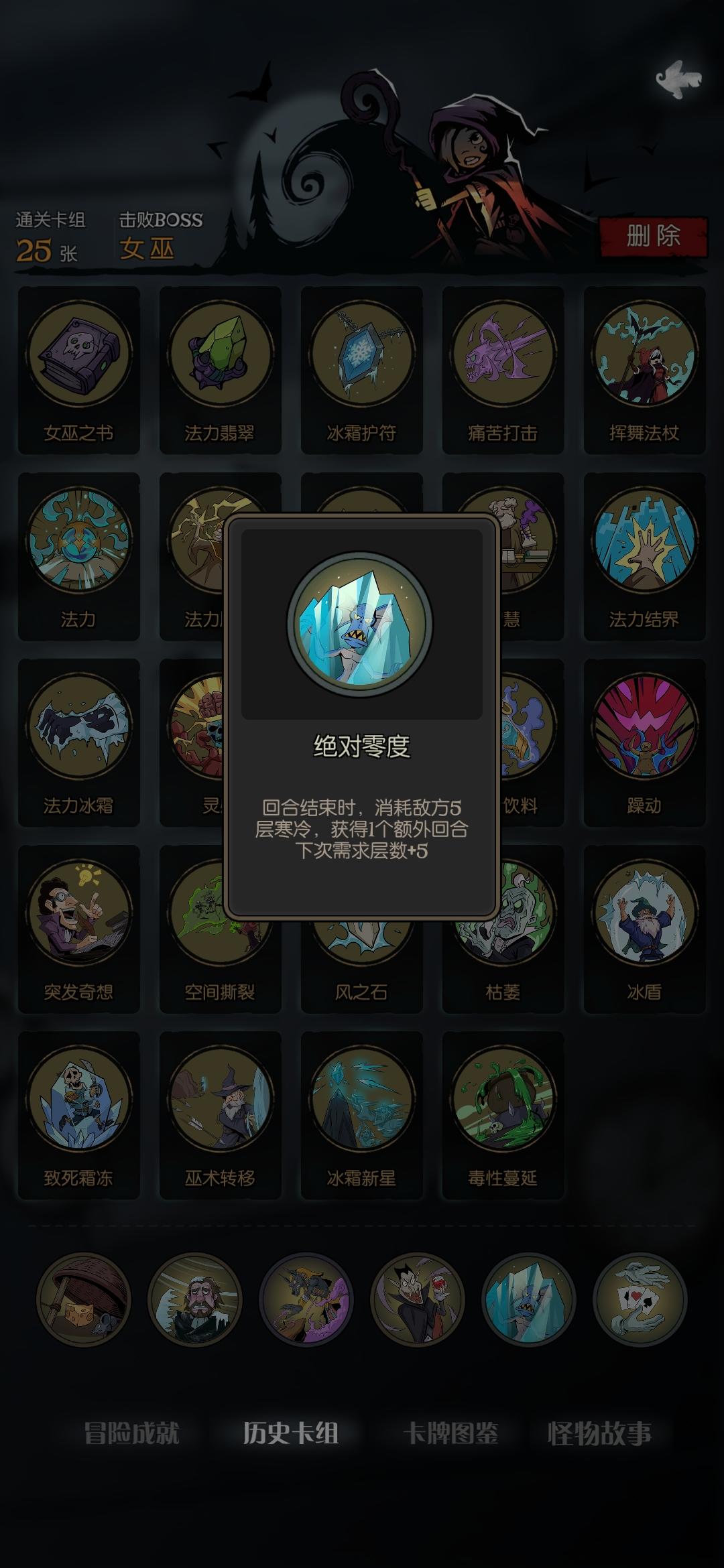 叠毒很过瘾啊😂这个是羸弱之躯的成就玩法,核心祝福是绝对零度,当然有寒风凛冽也不错至少可以多搞几个回合,前期怎么玩都没关系,保证自己有足够的蓝量和过牌的就行,叠毒和寒冷可以用毒性蔓延,突发奇想是你在没多少好牌时可以过渡用的,后期有枯萎,冰霜新星就行了,一个叠毒一个叠寒冷,当然寒冷只能叠一次就不太够,所以我还搞了个挥舞法杖,能即便是移除的卡牌也能复制使用,比如冰霜新星这种移除的五点法力消耗的咒术牌