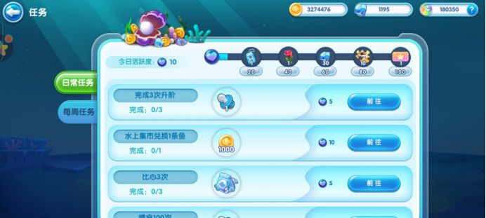 每天和每周都有固定的任务给玩家去完成,任务完成有小额奖励,达到一定活跃度就会有较好的奖励