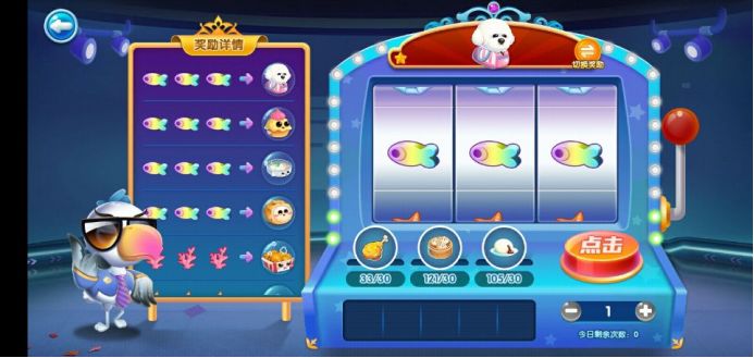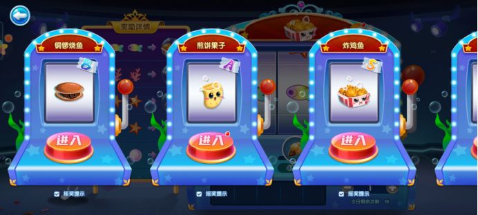 摇摇乐每天有十次机会,可以摇出鱼、鱼宝、精华和金币,当然如果你运气不好三个不一样的话也会送你一个再接再厉。VIP到一定程度可以增加摇摇乐次数