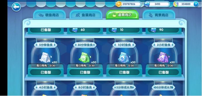 作为养鱼游戏,喂鱼肯定是必不可少的,如果你一直在线,我建议就喂五分钟的,毕竟在成就中有一项和喂鱼次数有关,在我看来每天的白色鱼食都必须要买,根据不同的在线情况,喂合适的鱼食,这样能让鱼食得到充分的利用。在晚上睡觉之前,喂越长时间的鱼食越好,毕竟只要鱼吃饱了,哪怕你离线的时候,他还在帮你努力产宝的。