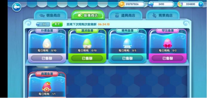 鱼蛋中会孵化出很多鱼,具体可以在鱼蛋里查看,鱼蛋中有很多鱼都会变异,鱼蛋商店每天都会刷新,我建议除了典藏鱼蛋,其他鱼蛋每天都全部买完,典藏鱼蛋等有能力后者需要以后在进行购买(樱花鱼蛋通过限时出游获得、独角兽蛋每个月签到25天可以获得一个,V7每天可以领一个)不同的蛋孵化时间不同,可以通过道具加快孵蛋速度。也可以用钻石和钱开新的孵化池。