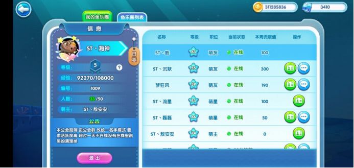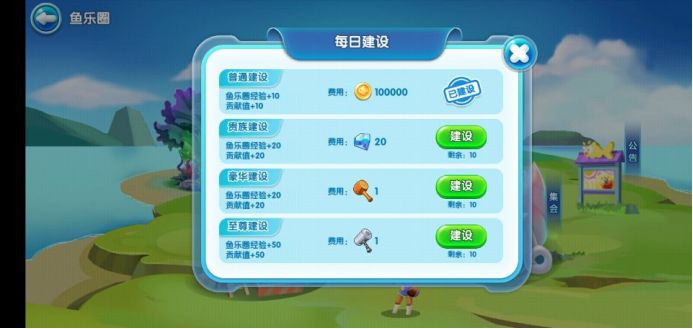 鱼乐圈于十五级开启。换一种说法就是公会,公会建设可以获得贡献值,贡献值可以换各种好东西,另外就是募集的,公会等级越高募集次数越多,如果有些鱼还没有,可以向公会中的大佬募集,以此先获得水上集市后面的鱼。(这里打个小广告,官服唯一五级工会ST丶海神,即将六级,公会中大佬无数,欢迎有玩家加入)