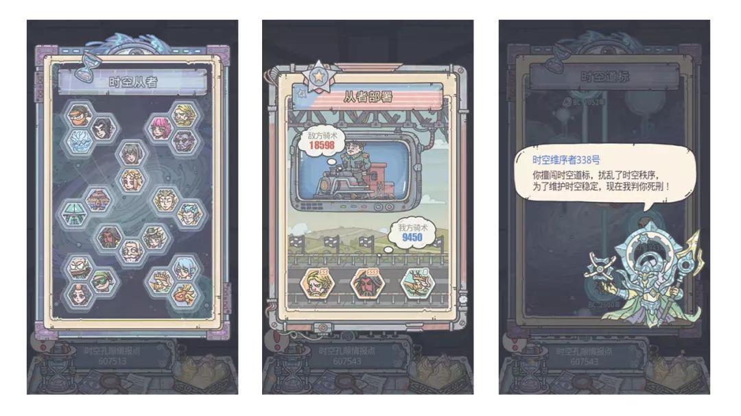 蜗爷们所招募的从者,可和已定位节点上的人物通过『忍术』『骑术』『舞艺』『道行』比拼,从而破解时空孔隙的奥秘…