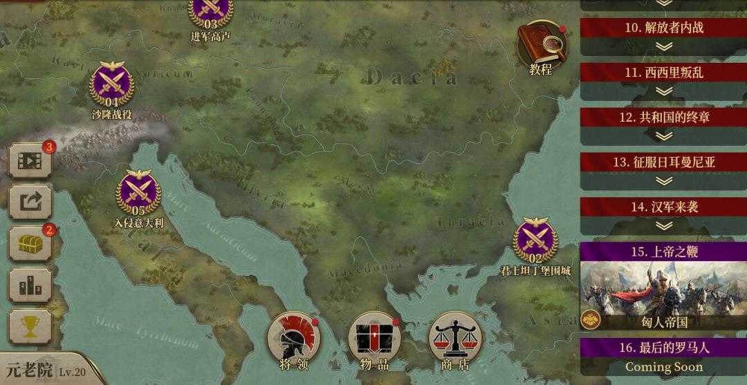 目前开放了“巨石阵”、“加尔桥”、“迦太基港”前3个章节,后续章节会陆续更新。