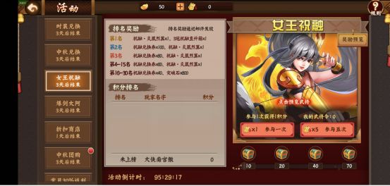 友情提示:武将抽奖结束时间为9月24日23:30,在这之后无法继续抽奖;排名展示结束时间为9月24日23:59。