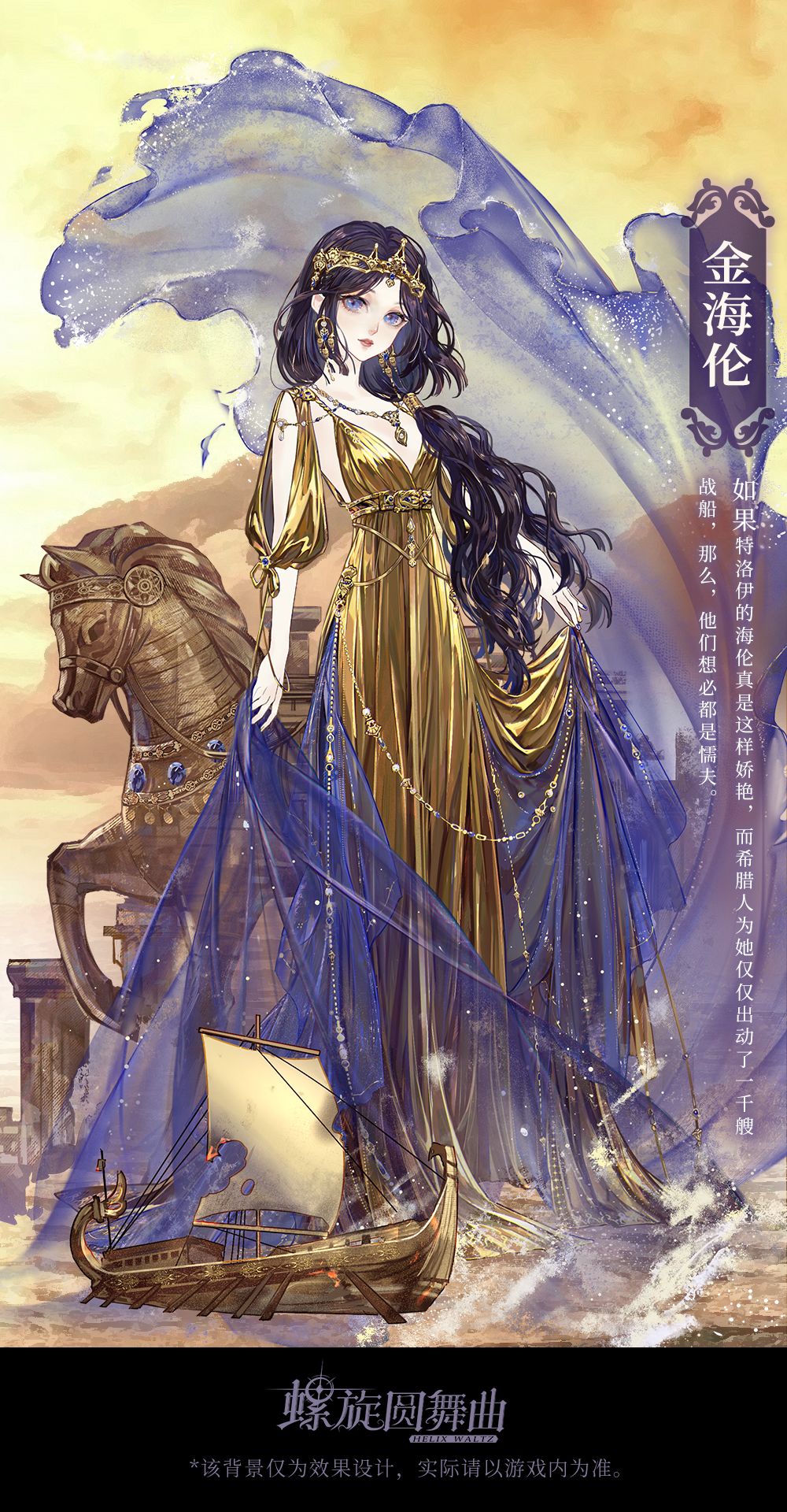 「金海伦」「死水沉寂之地」「不凋花」「极深之种」4套套装共43个部件;家具「阿喀琉斯之像」「奥德修斯之像」「珀尔修斯之像」「倪克斯女神之像」为特殊部件,只能通过兑换获得。