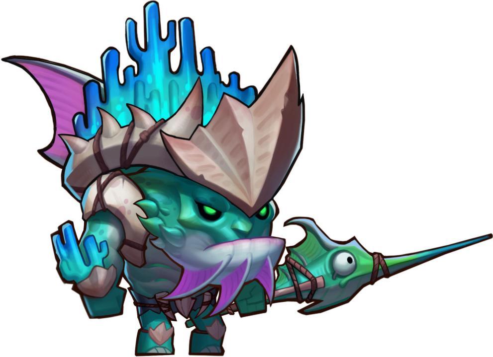 急浪勇进(普通):召唤一道海浪攻击最远处的敌人,沿途敌人都会受到伤害并被击退。受到伤害的敌人永久性失去护甲与魔抗,神佑潮汐的护甲比受伤害的敌人护甲高出越多,提升越多。