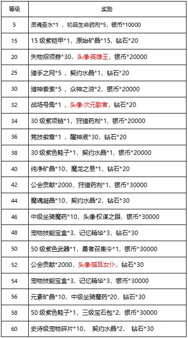 活动期间,玩家达到指定的等级即可获得丰厚奖励,钻石、契约水晶、限定头像、高级装备等,应有尽有,丰厚的升级奖励助您成长快人一步!