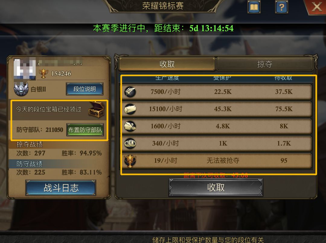 我们都知道,在荣耀锦标赛中,不管是挑战掠夺,还是自行收取,都可以获得一定量的资源,因此,防止别人掠夺资源也是很重要的一点。
