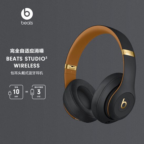 Beats Studio3 Wireless 录音师无线3 头戴式 蓝牙无线降噪耳机 游戏耳机 -午夜黑