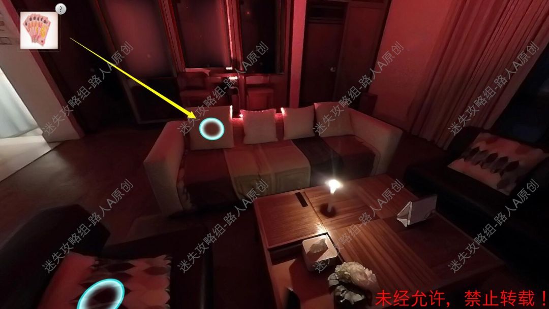 6.将【冥币】放入【抱枕后面的红包】,拾取【纸人】。(先点击【冥币】,再点击沙发上的【抱枕】。)6.1