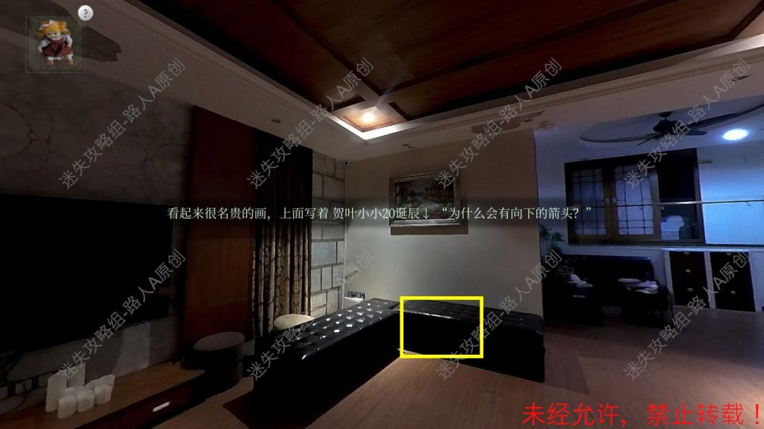 9.点击墙上的挂画,根据它的箭头提示,点击下方的黑色沙发,收集【老照片】。9.1