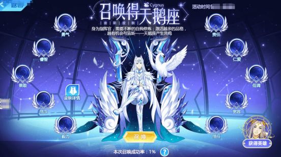 SSR宙斯皮肤--天鹅座:暴击伤害+3%,魔法攻击+50