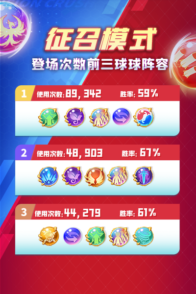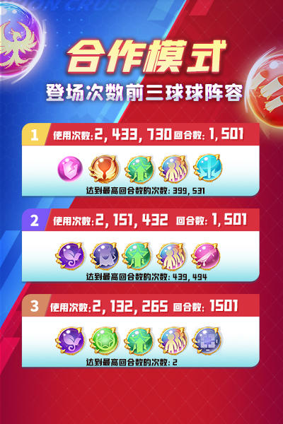 本月登场次数中连击球球阵容虽然能顺利通关,但通关次数还是比较少,想要稳定通关更推荐使用前两套阵容!