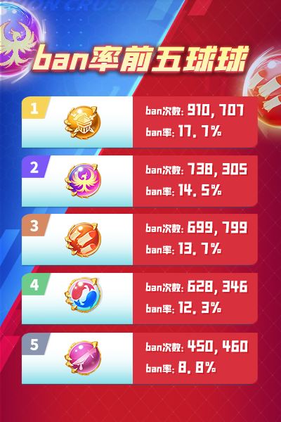 ban率榜依然有飞弹、火凤的身影!超过乾坤和暗杀球球!看来飞弹和火凤强大的输出能力真是让大家又爱又恨!
