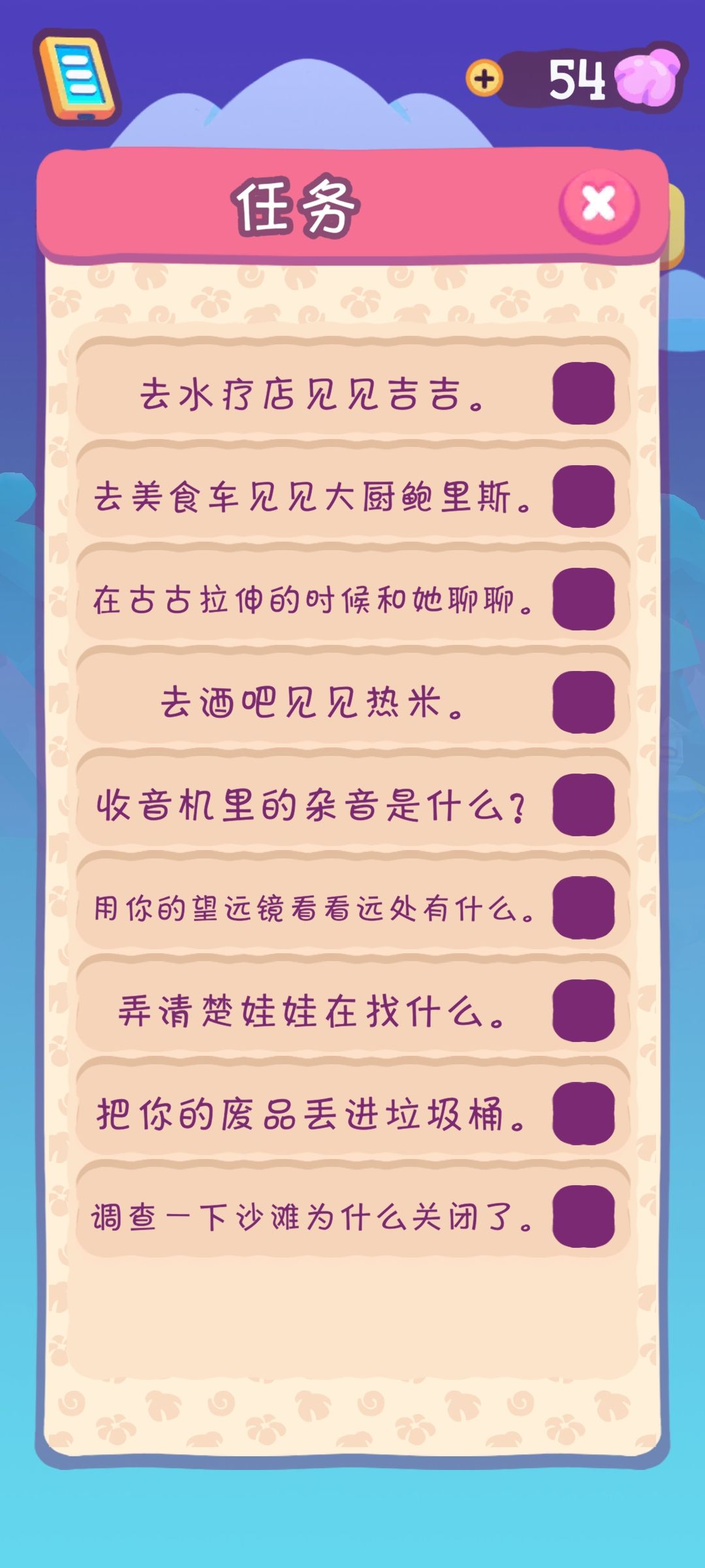 总感觉主角被骗了,这里也不是十全十美的。沙滩🏖️被人们弄得很脏现在不让进去,自己家也很脏什么东西都得永贝壳🐚买!贝壳🐚好多时候需要看广告才给你!不知道肝不肝希望别太肝,我游戏不少玩不完呜呜呜。