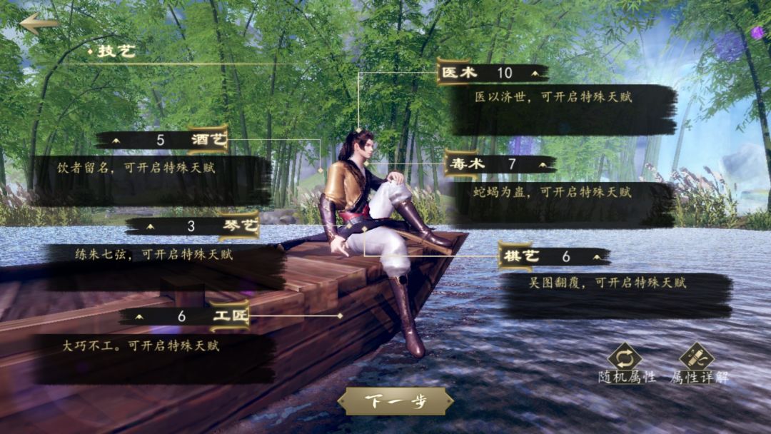 3. 武艺就随便刷刷,选个喜欢的刷高一点,比如玩剑就把剑术刷高(数值后面可以刷上来的)