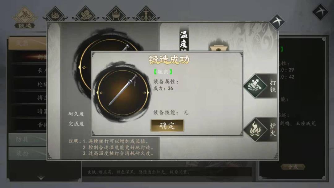 打造五把铁剑(刷钱任务):先买玄铁,再打造武器,在这里有个炼器的技巧:一直狂点确定可以一次打造多把,炼丹也是这样的