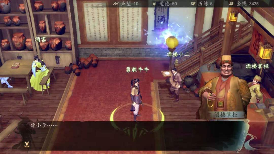 (到酒楼门口先把武学学了,修为先用掉升一升心法招式,然后存档,接下来有几场硬仗要打)