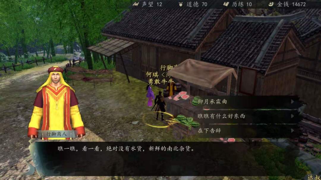 然后在去翠竹林买鱼时,你发现路边有一个钱袋,拿起时发现这tm是“钓鱼执法”,钱袋被人下了毒,你突然明白什么是“江湖”了(果然是江湖险恶啊!)