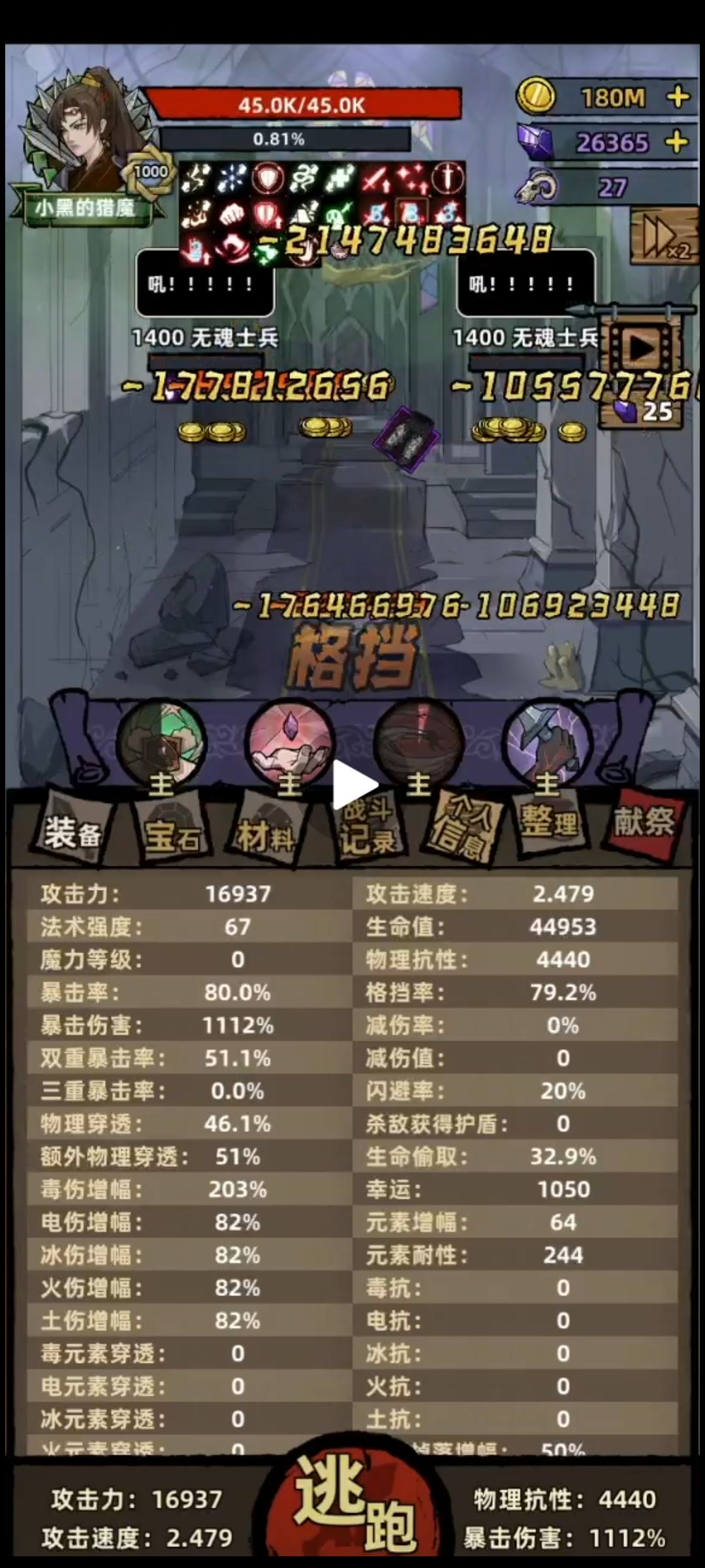 这是1400的视频和截图。猎魔单从输出来说,一点不比亡灵弱。下面是装备和我的一些看法
