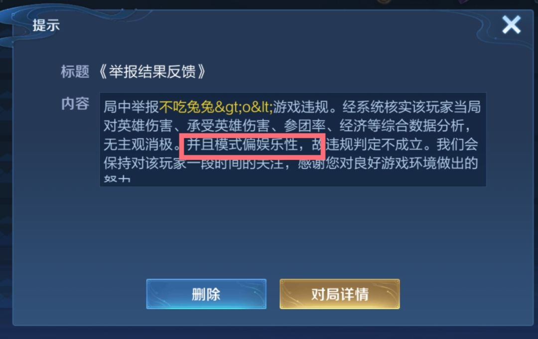 就这也举报失败,意思是以后我在娱乐局练英雄大家是不可以说我的哦?是不可以举报我的哦?