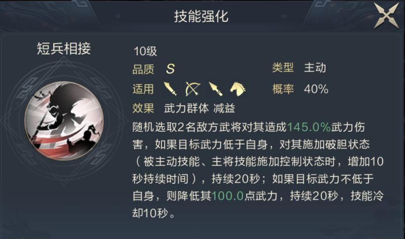 但若文丑武力都高于敌方,那么只会触发破胆效果,而目前双核类打法几乎不会使用控制型技能,颜良也不存在控制能力,唯一的控制来源就只能从第三副将入手,这与第三副将使用防御+净化、增伤+净化的框架正好冲突。