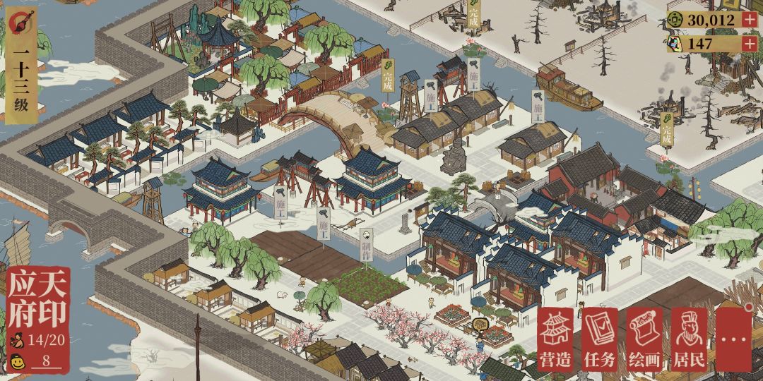 肝到13级,目前收到的任务已经全部完成,探险秦淮河畔已经全部完成,感觉没什么可玩的了,以下是我想说的几个问题,大家都反馈的繁荣度还有体力问题我就不说了