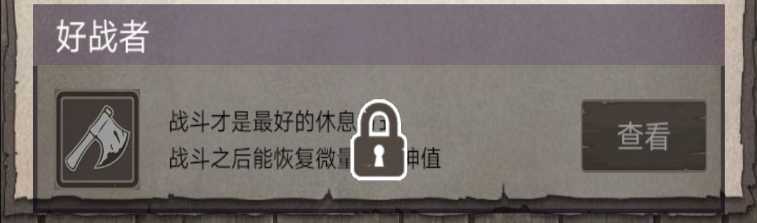 好战者 弱鸡理由 战斗后恢复最高5点精神值 砍一颗树也能恢复 然而高挑走几步路就掉一大半精神值 或许有扛精会说搭配此天赋一口气通鬼船 然而挑15去过鬼船逃离的我想说既然你都能上天了还坐啥子船?