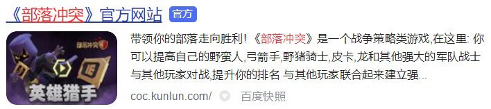 然后我就去百度搜索“部落冲突中国代理”的相关资讯,发现2015年9月就有报道,部落冲突中国区将由昆仑来代理,而在此之前,昆仑先是代理了Spuercell的另外一款手游海岛奇兵,并获得了不错的业绩,于是之后就顺理成章的签下了部落冲突的代理。