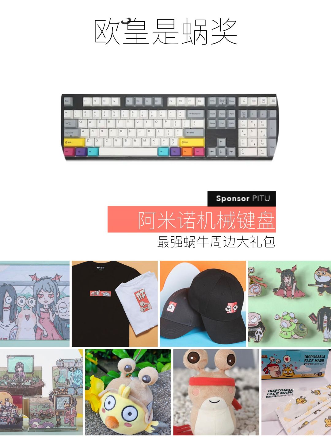 (大礼包包含:定制手提袋+黄鹂鸟公仔挂件+加油蜗公仔+蜗牛零氪护肝T恤+蜗牛鸭舌帽+定制鼠标垫+定制口罩+蜗牛亚克力摆件一套+蜗牛定制勋章一套)