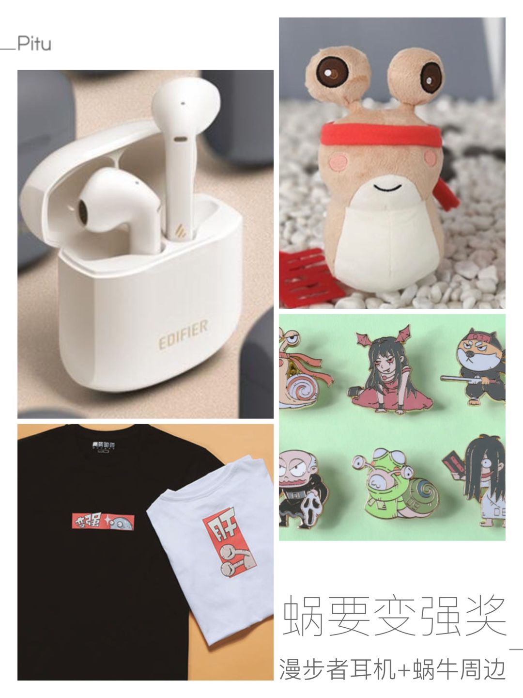 漫步者无线蓝牙耳机*1 + 蜗牛定制徽章一套 + 加油蜗公仔*1 +蜗牛变强T恤*1