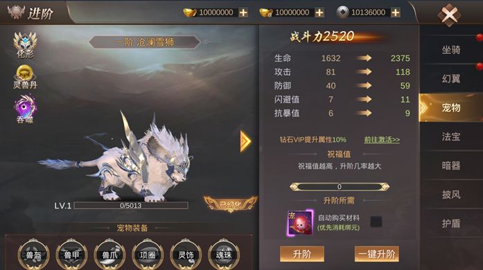 3.宠物进阶成功后,不仅能提升人物属性,还能获得特定宠物;