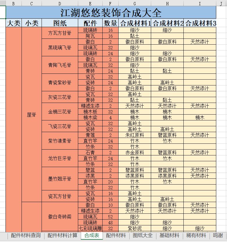 ps:江湖悠悠房屋diy材料查询与计算器excel版,已上传到网盘,有需要自取。