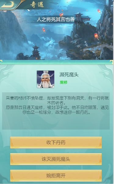 奇遇基本都是遇到副本中的怪物或者人。需要你选择他们给出的选项,有的是给与灵石有的给与材料,不同的选项有不同的结果。奇遇经常会给一下仙丹。选错有时候没有影响,有时候会丢失一定量的灵石。