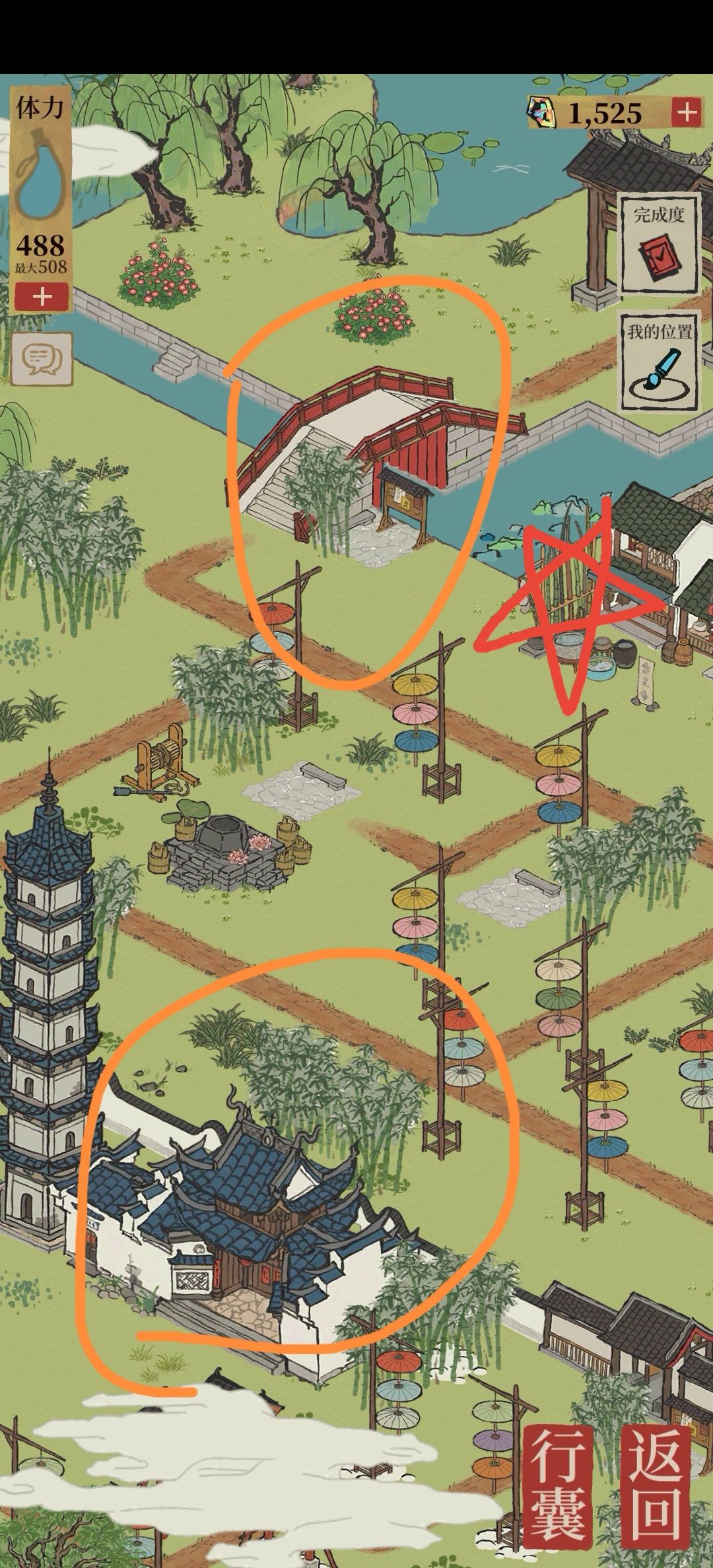 图二中,上边池塘找草龟,下方是砖。尽量用探险值高的,砖那里有个小挑战,一次五块砖。