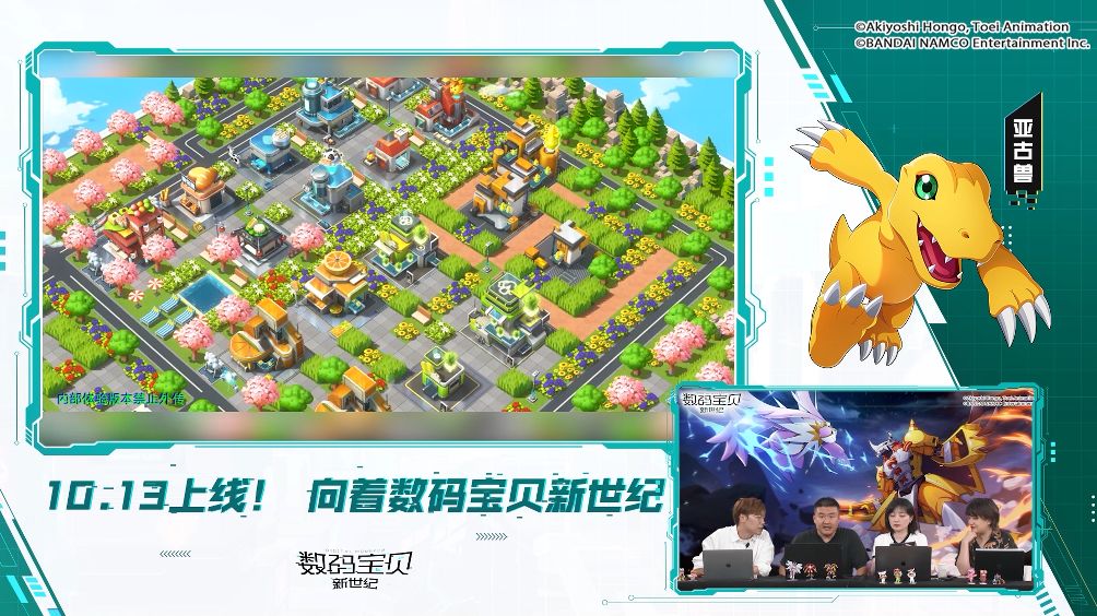 直播开始,制作人MISAKI为大家介绍了《数码宝贝:新世纪》这款游戏。策划们进行了游戏试玩,并展示游戏内数码宝贝全图鉴,队长们可以在在图鉴中了解游戏内数码宝贝的详细技能属性介绍以及进化路线等基本信息。同时,策划们还带领大家体验了一番游戏主城的彩蛋和交互功能。