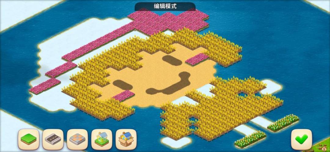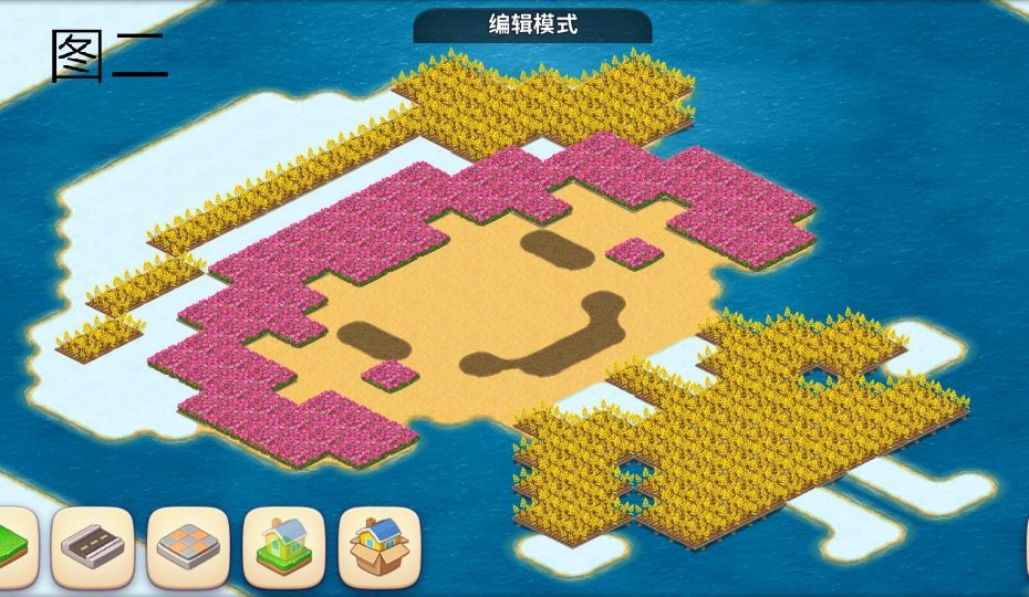 我们在帽子的花边、腮红铺设花圃;在头发、裙子上铺设土地,用到的土地是122块,如果地少的村民那就选择图二的铺设,或者在其他地方(头发两边鬓角、右手臂长度)减少,具体自行选择。