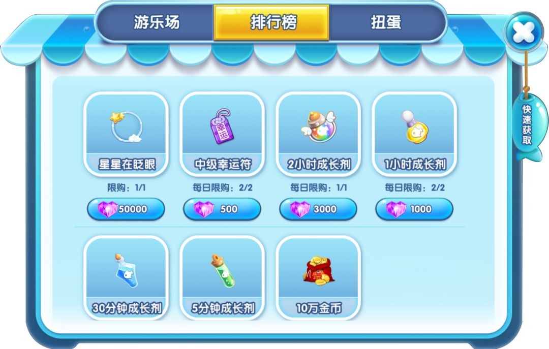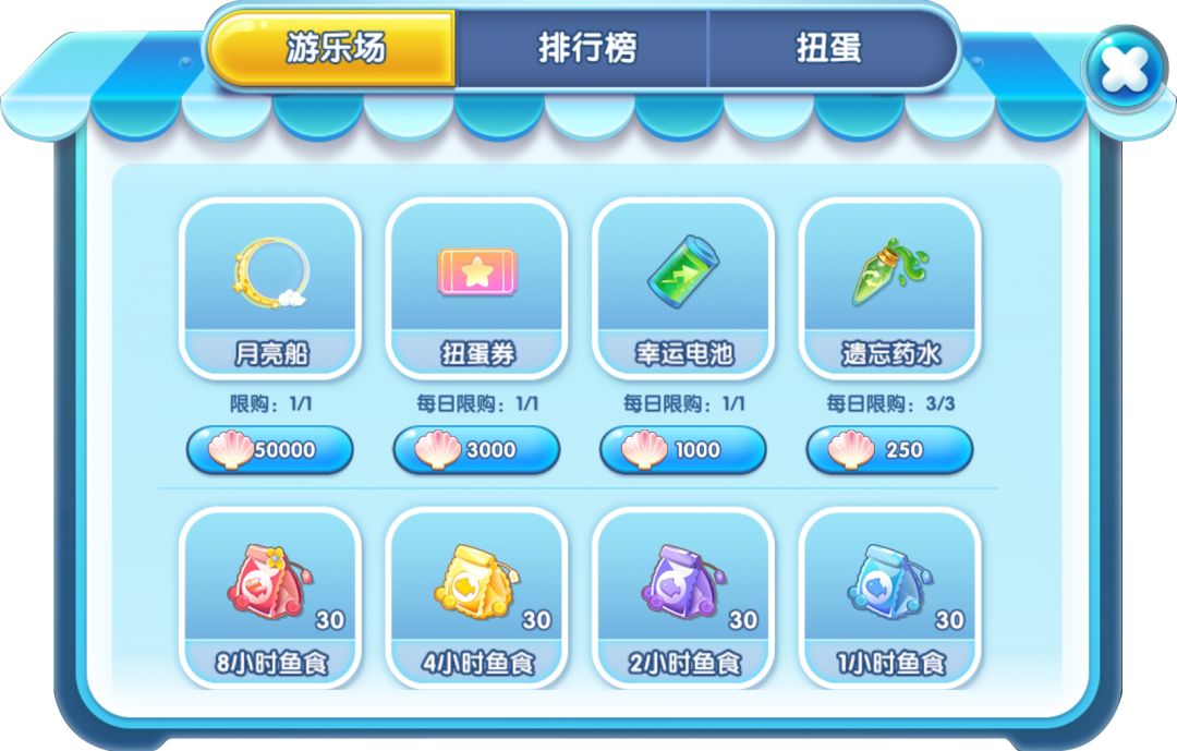 游乐场获得的贝壳和观赏榜的奖励都可以在兑换商店中换取道具噢~