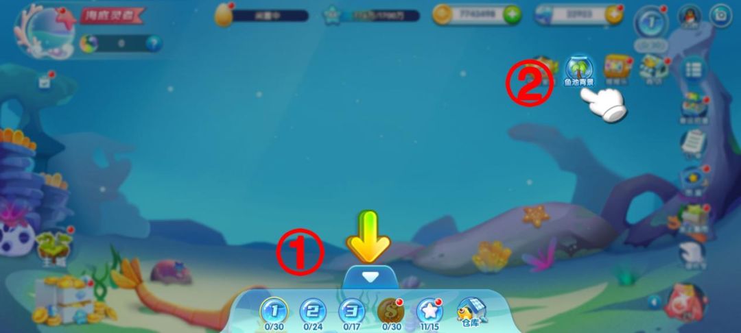 点击箭头后就可以看到需要的宝石是由哪只小鱼产出,需要的数量是多少。