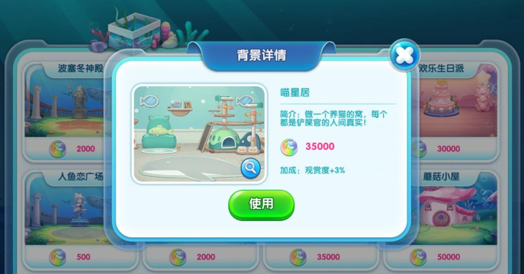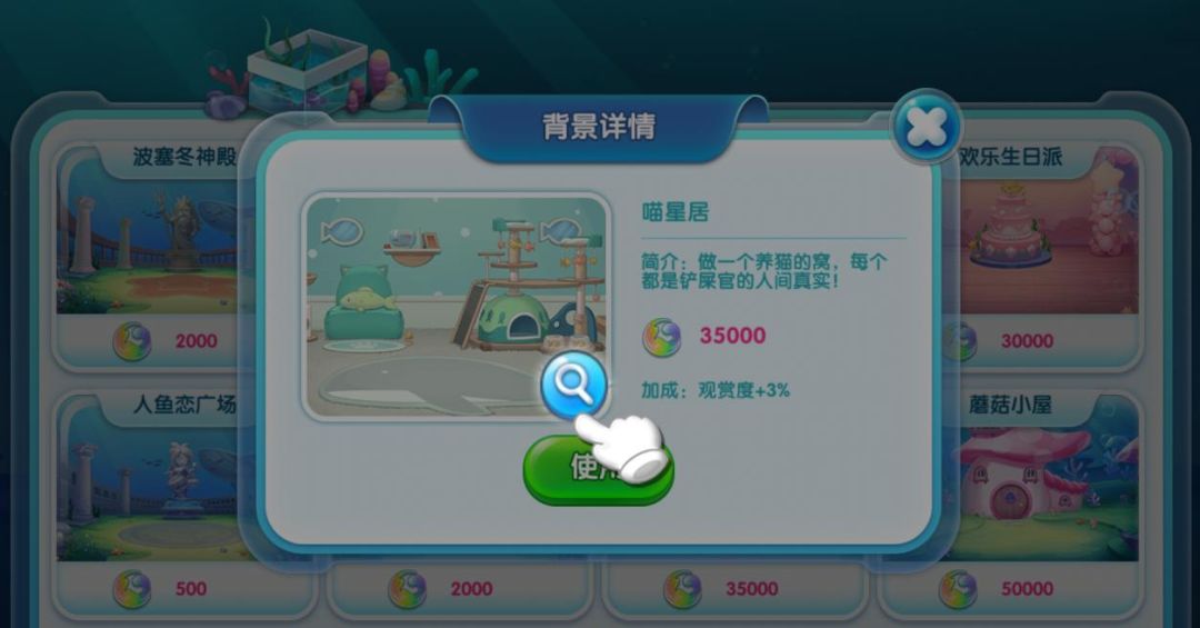 买了背景的馆长需要手动更换背景噢。更换背景的入口在鱼池右上角,