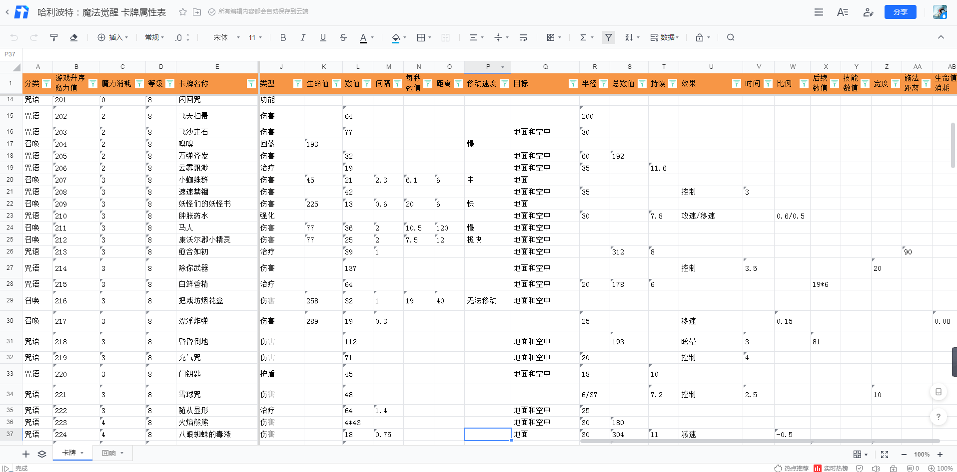【腾讯文档】哈利波特:魔法觉醒 卡牌属性表
