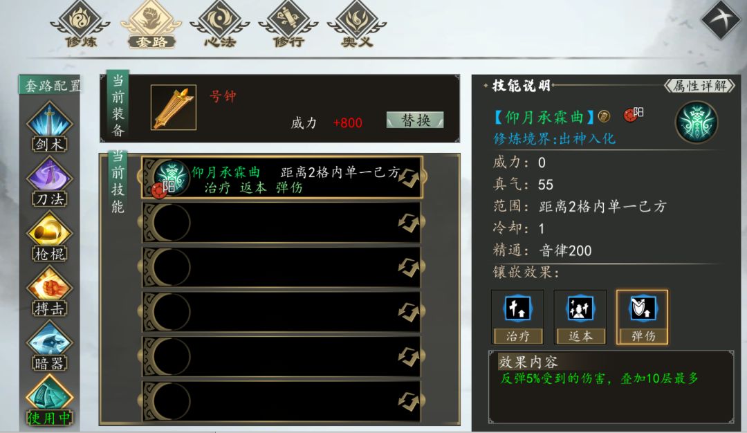 招式:仰月承霖曲(治疗,返本,弹伤)