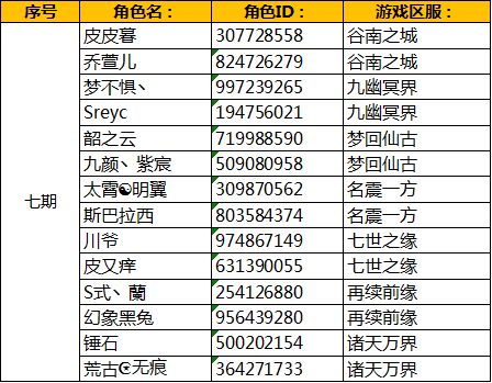 上周(6月1日00:01~ 6月7日23:59)的七孔获奖名单公布如下: