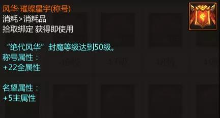 同时,在50级时,能够获得称号风华·璀璨星宇(称号)。