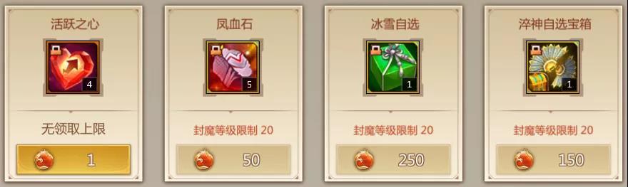 获取封魔经验提升封封魔等级后可在此页面领取玉曜玥,消耗玉曜玥可在奖励中兑换道具。